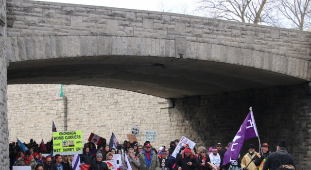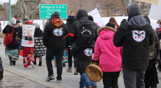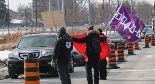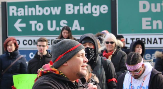 Indigenous protesters in Niagara, today blocked the Rainbow Bridge to show their support for Hereditary Chiefs of Wet’suwet’en over pipeline construction on their land.