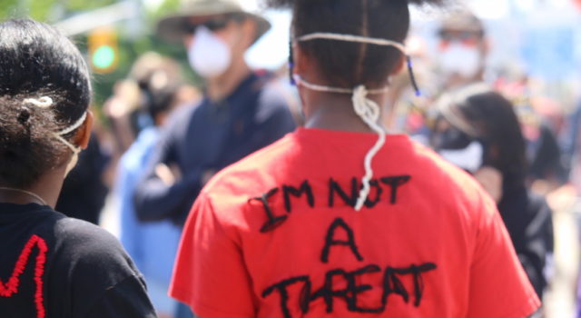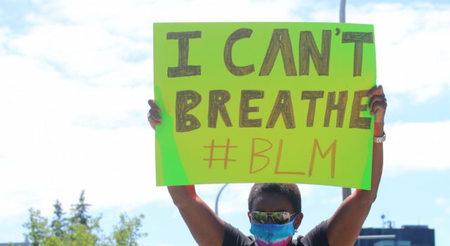 The chants include: Black Lives Matter, I can’t breathe, no justice no peace and no racist police.