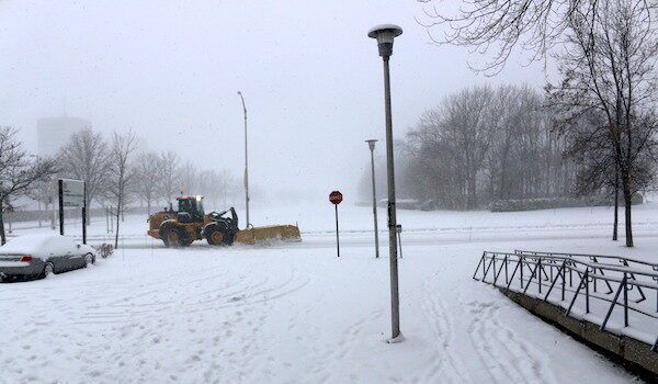 Snowplows can be seen on the roads as the first major winter weather hits Quebec area.