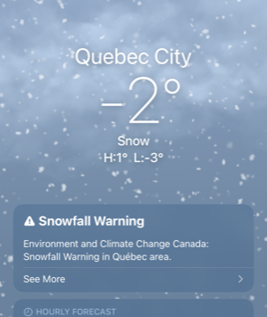 Environment and Climate Change Canada today, issued a snowfall warning in the Quebec area.