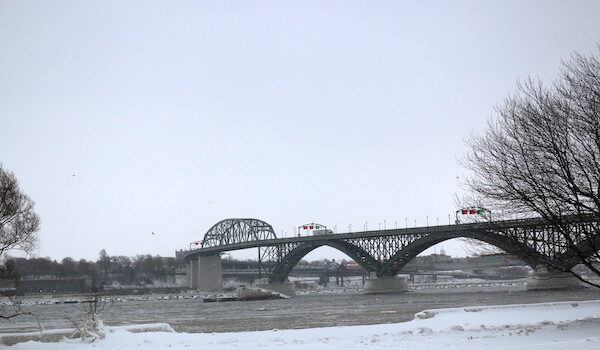 Maintenance trucks blocked the highway leading to the Peace Bridge when Mosaic Edition visited the Town of Fort Erie to report on the historical storm that had resulted in deaths of some residents across the border.