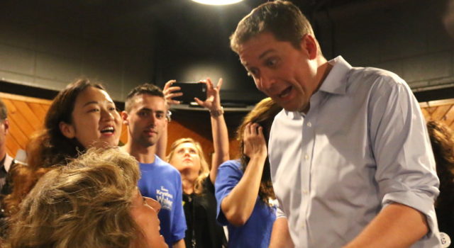 It was a full house at the Cat’s Caboose as party members clapped and cheered on their leader.